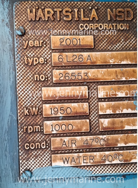 Wartsila 6L26A Main Engines 1650 Kw, 1000 RPM